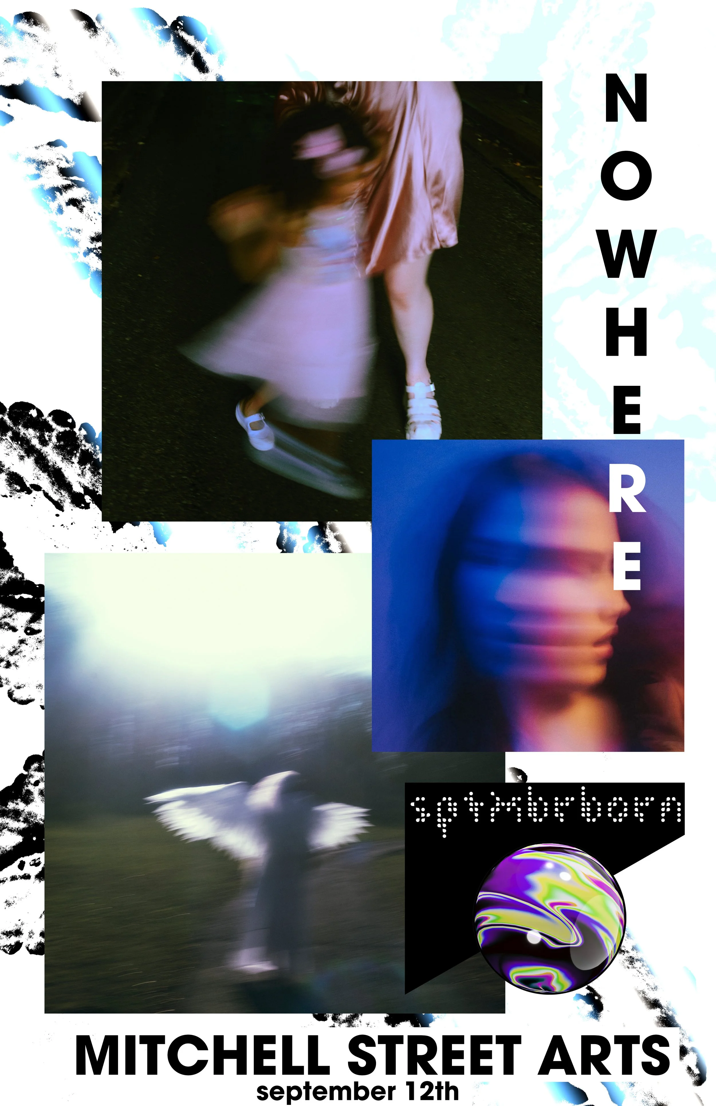 Nowhere is a series by Milwaukee-based artist sptmbrborn that explores the visual language of internal landscapes. Through color, light, and spatial tension, the works create environments that echo emotional undercurrents—spaces suspended, distorted, or gently unraveled. Vulnerability becomes material, and each portrait invites the viewer into a threshold where clarity gives way to feeling.